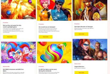 Justspin Casino est un casino jaune vif et rose qui, malgré ce dynamisme, est toujours facile à naviguer et à explorer pour des joueurs nouveaux et réguliers. En haut de la page d'accueil de Just Spin Casino, sont les principaux endroits que vous souhaitez visiter - Jeux et promotions.
