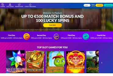 Playluck Casino est une plate-forme colorée et audacieuse avec de grandes bannières et icônes. La navigation principale est sur le dessus. Vous pouvez choisir la page "casino", parcourir les jeux "Live Casino", accéder à "promotions" ou lire sur le "programme de fidélité".