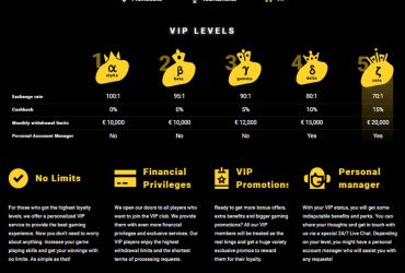 Oui, un programme VIP est disponible chez Zet Casino. Plus vous déposez et jouez ici, vous allez gagner des points et vous gravirez à travers les niveaux. Ces niveaux incluent Alpha, Beta, Gamma, Delta et Zeta. Lorsque vous travaillez votre chemin, vous aurez accès à de en de prômes spéciaux tels que Cashback jusqu'à 15%, un gestionnaire de compte personnel et des limites de retrait mensuelles élevées.