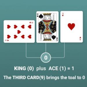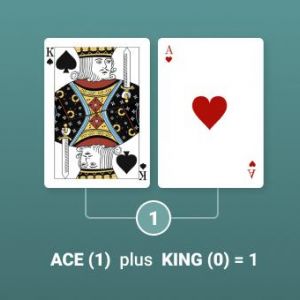 Si vous jouiez au blackjack, ce serait une main gagnante et ce serait un bon départ dans de nombreux autres jeux de cartes. Cependant, à Baccarat, il a une valeur totale de 1 uniquement: