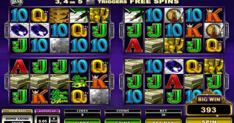 Break Da Bank émule le visuel et le gameplay d'un vrai casino de style Vegas: il dispose de 3 bobines, de 2 lignes et de 5 lignes de rémunération fixes qui font des combinaisons gagnantes traditionnelles. En des symboles de barres et des signes de dollar, il y a aussi le symbole sauvage qui est le logo du jeu.